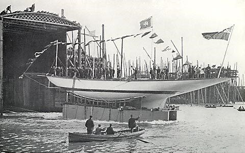 Launching of the Shamrock III from Denny’s shipyard in Dumbarton, Scotland in 1903