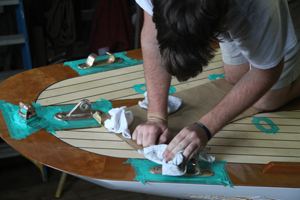 When I asked Donn if they were currently building anything his face lit up. They were just a few days away from launching “Invader III” a replica of the 1930 Scottish yacht the Invader II, designed by William Fife III and made for Commodore Gooderham of the Royal Canadian Yacht Club. For the past 18 months Beattie Hayes, Ben Bentley, Scott Braseth, Steve Lubitz and Mike Javidi have worked on bringing this replica to life.