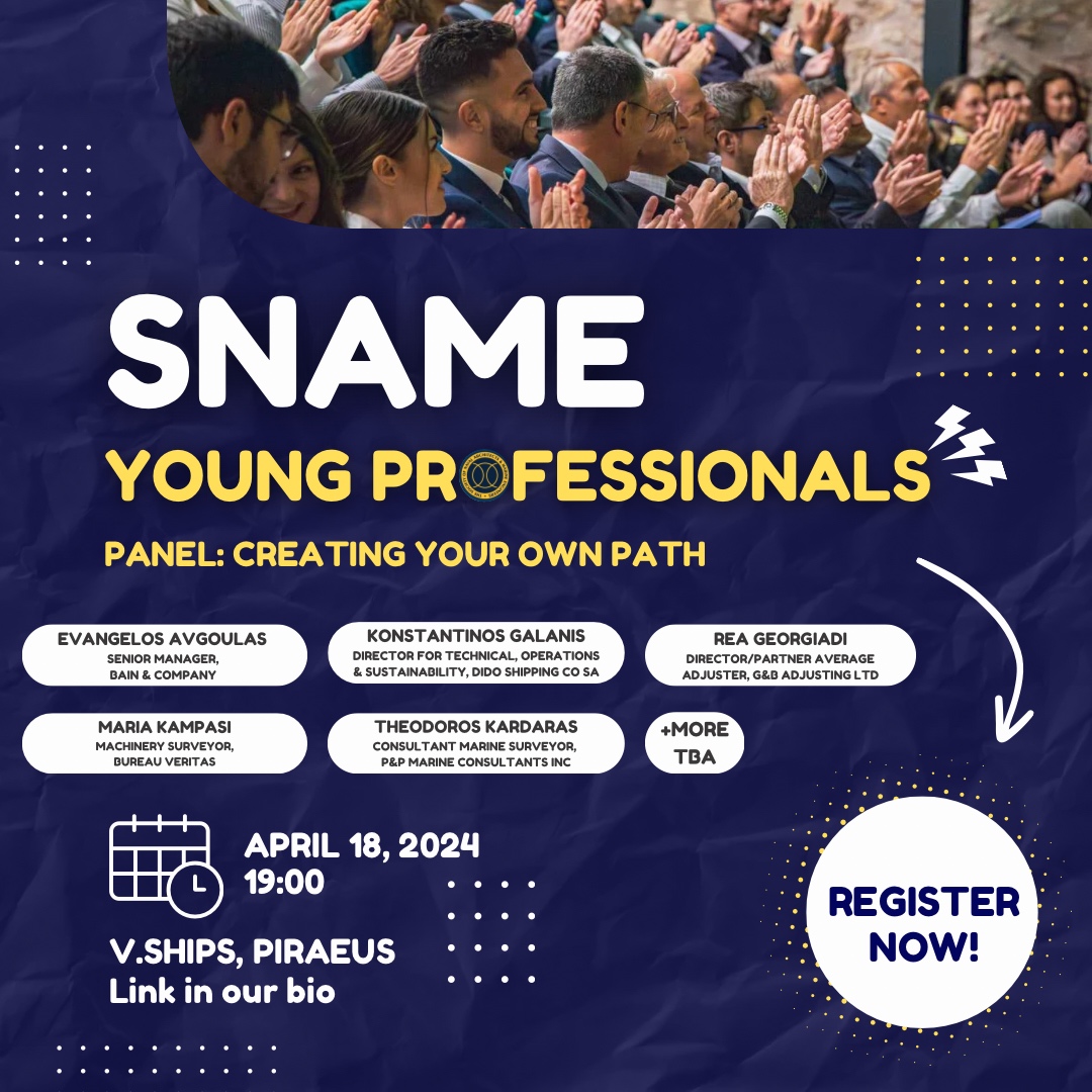 The SNAME Young Professionals Committee, along with the EC of SNAME NTUA and SNAME UNIWA, is delighted to announce the 8th "Young Professionals Panel" Event.