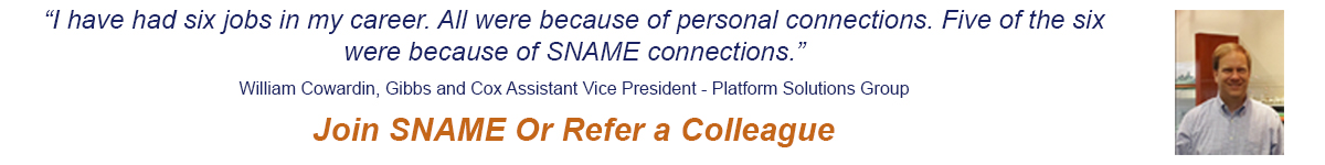 • Membership is Recognition of Your Education/Experience/Competence (USD 150): Affiliation and alignment with SNAME delivers higher credibility in the minds of colleagues, customers and suppliers.